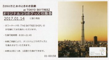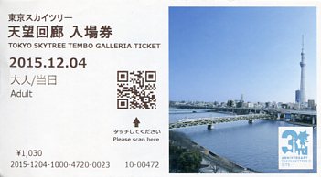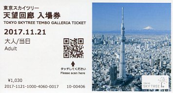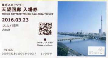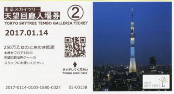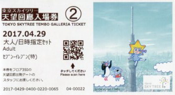 | 望回廊入場券で、予約券のデザインは天望デッキ入場券と同じです。4階のチケットカウンターで受 |