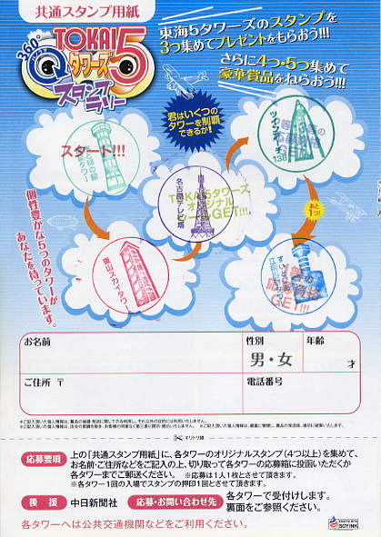 | 平成18年と19年は『ToKAi タワークイズ?ラリー』が実施されており、スタンプラリーは |