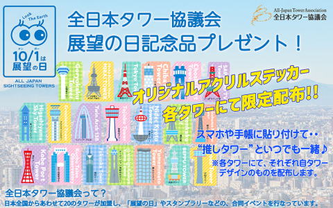 | タワー連盟では、「10月1日(展望の日)は、各タワーでお得な特典が盛りだくさんです。各タワーの |