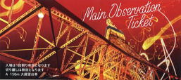 | 展望料金 | メインデッキ 大人(高校生以上) 900円 子供(小中学生) 500円 幼児(4才以上) 400円 トップデッキツアー 大人(高校生以上) 2,800円 子供(小中学生) 1,800円 幼児(4才以上) 1,200円 |