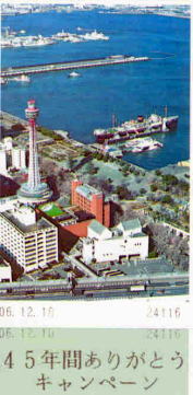 | 訪問記録等 | 平成7年(1995年)12月29日(金)に最初の訪問。 閉鎖が決まった平成18年(2006年)12月10日(日)に 再訪しました。テレカはありませんでしたが、横浜関係の グッズもたくさん販売しており、お客さんであふれていま した。カードやメダルが入手できなかったので、タワー 関連グッズとしてミニタオルを購入しました。 |