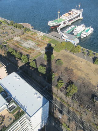 ※横浜マリンタワーの倒影については、横浜マリンタワーの1日の影の動きを追った
